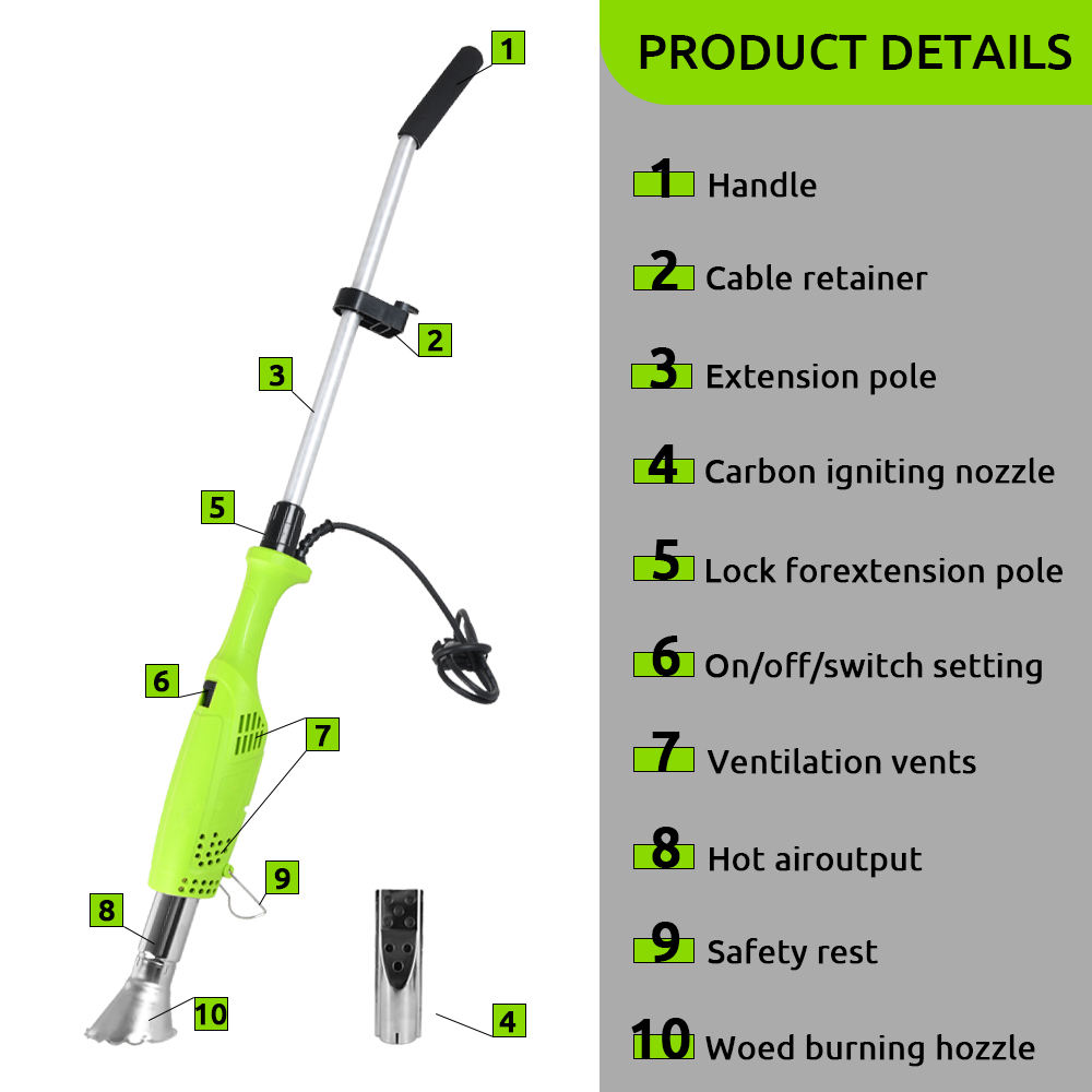 5. For safe, chemical-free, efficient garden weed control, this 2000W electric weed torch checks all boxes: dual temperature settings, high air flow, safe certification, and flexible cord length. It’s the go-to electric garden weed torch burner for residential yards—combining effectiveness, versatility, and safety for hassle-free outdoor maintenance.